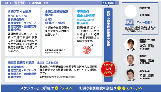 再受講30%割引 |LEC受講生25%割引 |5問免除者25%割引 |宅建・管業・マン管・賃貸・FP受験者20%割引 |退職者・離職者応援割引20%割引 |おためしWeb受講5,000円割引※上記割引の併用はできません。その他詳細は各クーポンページをご覧ください。